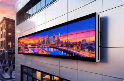 Large-scale display surfaces with a horizontal dimension significantly exceeding the vertical one (e.g. ribbons, fascias). Usually, they serve as additional display surfaces for large-scale LED displays and center-hung LED video cubes